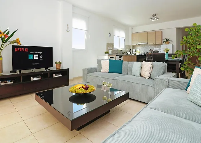 Situé dans le quartier "Pernera" à Protaras, Apartment Nemesis propose une piscine extérieure pour garantir un séjour inoubliable. La résidence spacieuse se trouve à moins de 20 minutes à pied de la Plage de Kalamies et la Plage de Konnos est dans une zone de 7 km.